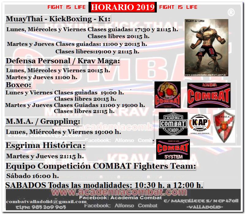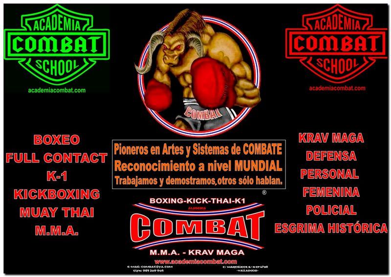 Seguimos construyendo una página para los amantes de las Artes de Combate en Valladolid (y por supuesto del resto de España y el Mundo..), no te olvides de visitarnos dentro de poco. ACADEMIA COMBAT GYM, Cº del Martillete s/n GYM C.P. 47011 - Valladolid (Frente Gasolinera Pilarica) Tlfn.:983-209-903 E-Mail: combatvalladolid@gmail.com. APARCAMIENTO SIN PROBLEMAS.